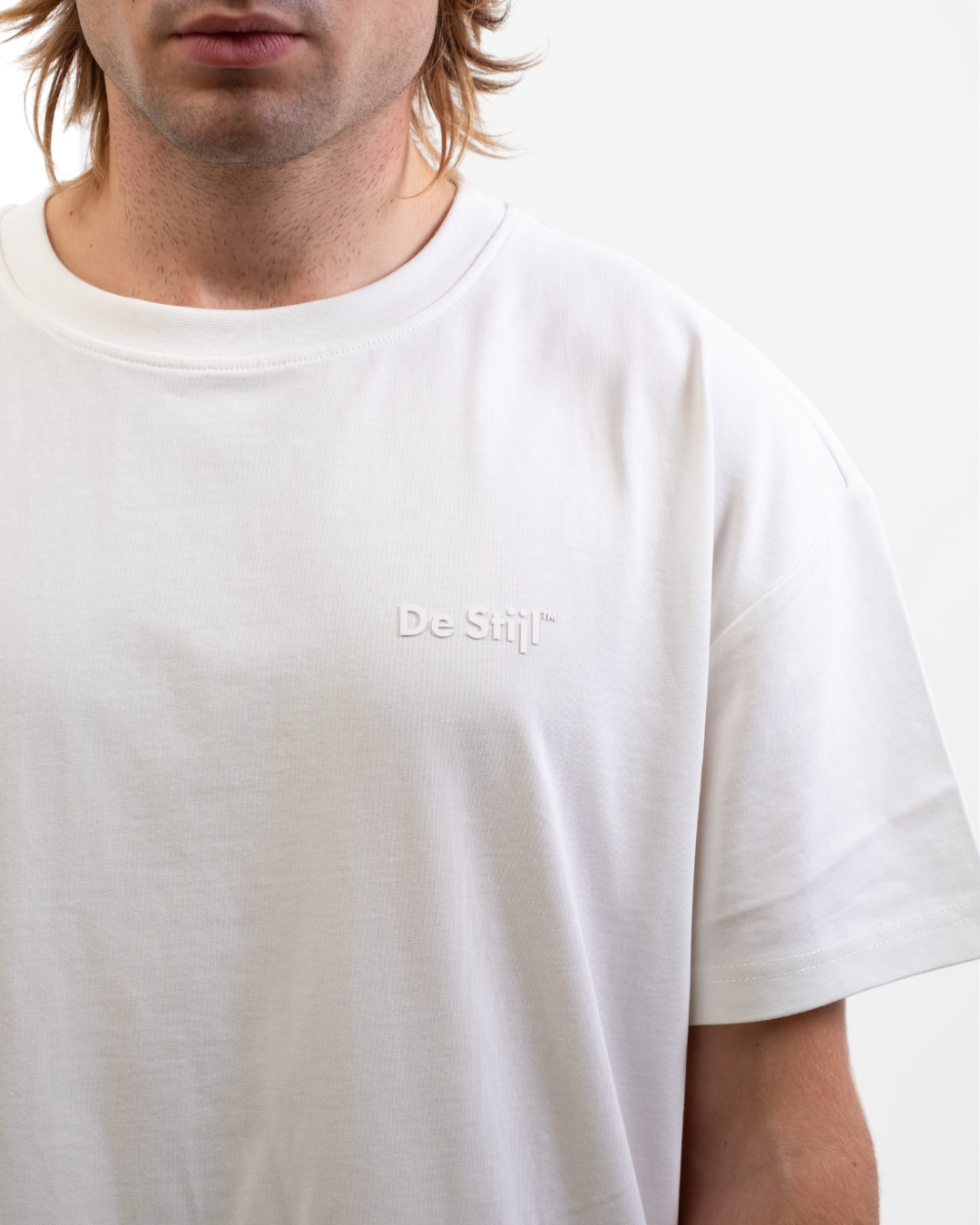 Our T-shirt is made of heavy-weight cotton jersey. A ribbed crew neck collar and De Stijl™ artwork decorate the garment. Silicone-washed for an ultra-soft feel, smooth surface, and lasting durability. Two-ply compact yarn ensures durability and resistance to tearing.